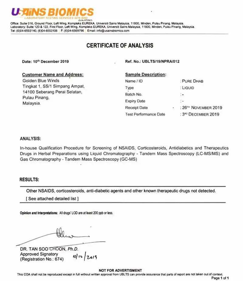 TIADA BAHAN TERLARANG DALAM PURE DHAB